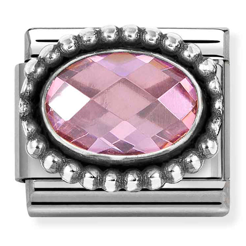 Composable Classic FACETED CZ, steel with OXIDISED OVAL BEADED RICH SETTING 925 silver PINK