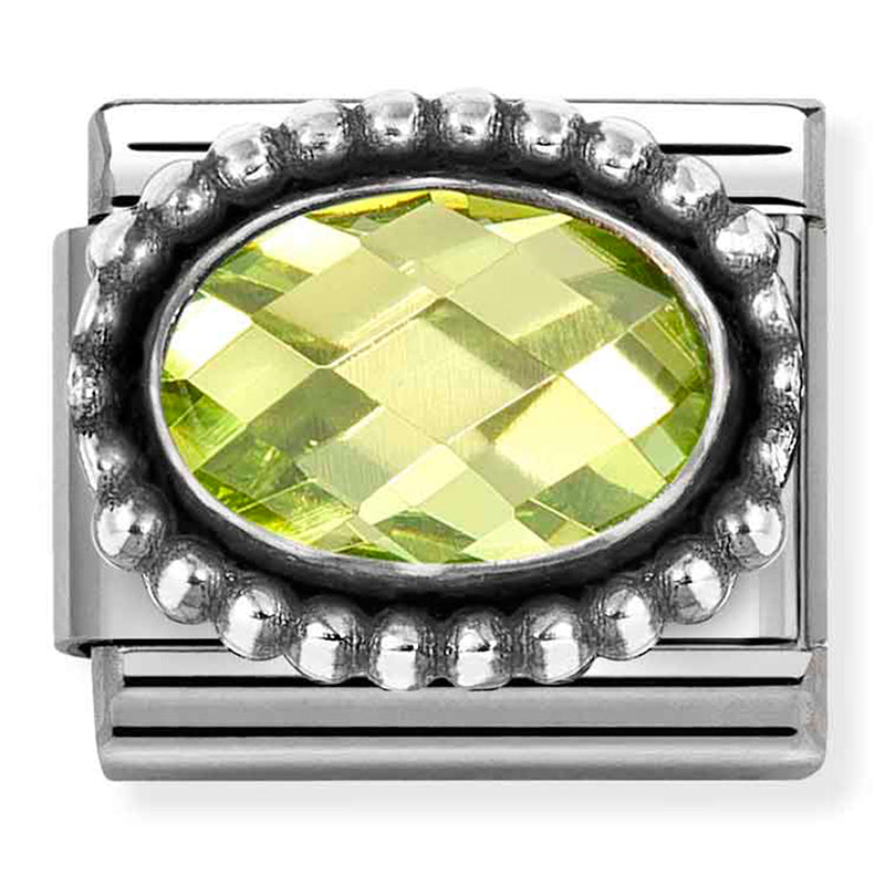Composable Classic FACETED CZ, steel with OXIDISED OVAL BEADED RICH SETTING 925 silver GREEN
