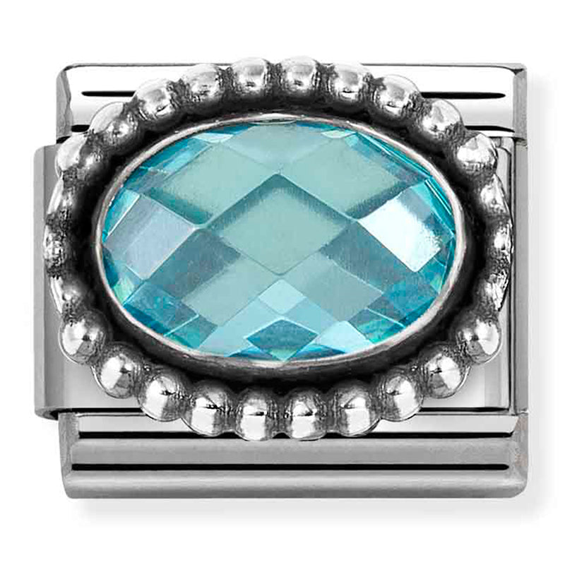 Composable Classic FACETED CZ, steel with OXIDISED OVAL BEADED RICH SETTING 925 silver LIGHT BLUE
