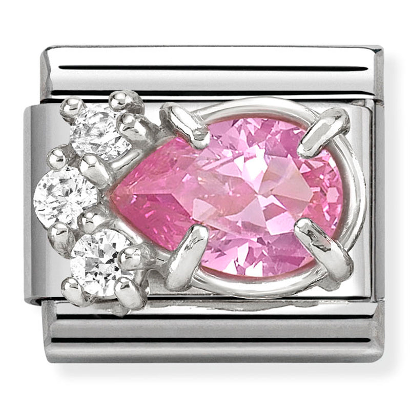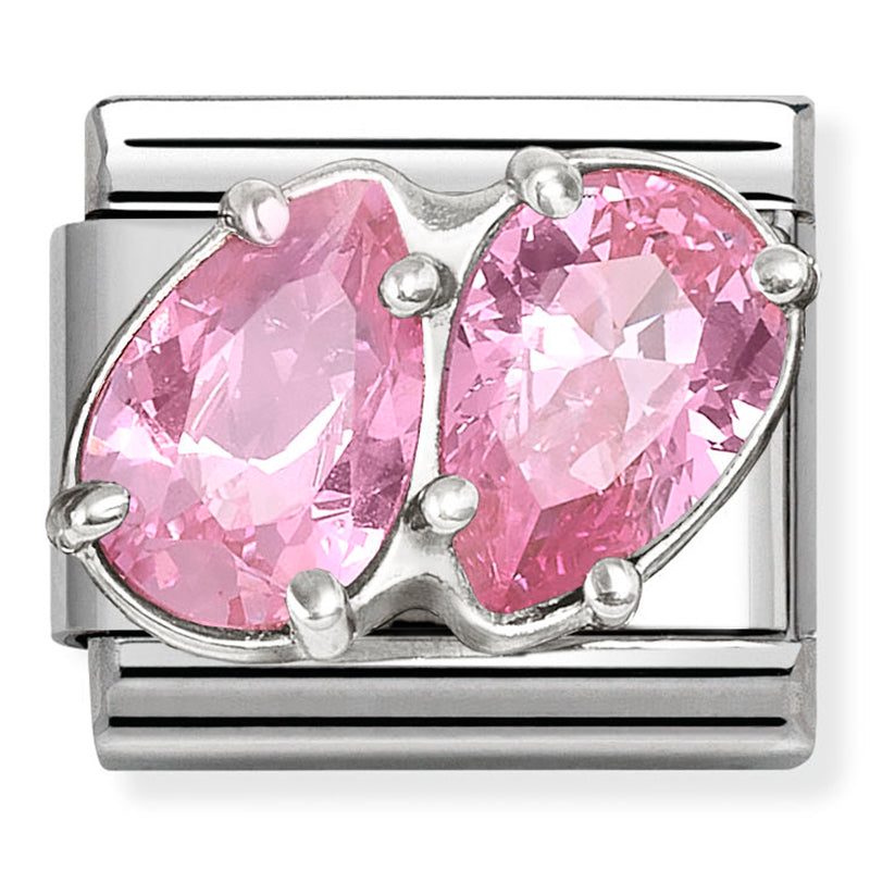Composable Classic steel, CZ & 925 silver Pink Twin CZ drop