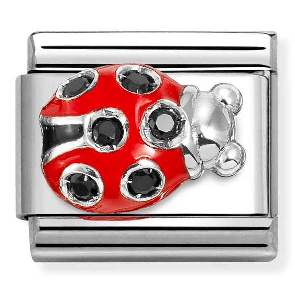 Composable Classic SYMBOLS stainless steel, enamel, cz and 925 sterling silver Ladybug red BLACK