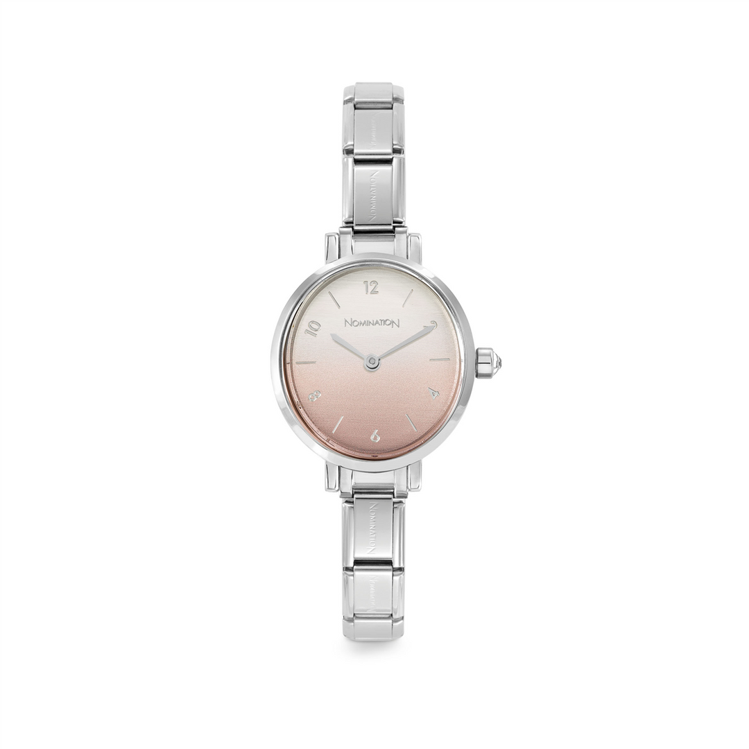 PARIS watch with steel strap OVAL with cz Sunray Colour Fade Pink
