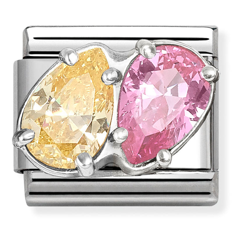 Composable Classic steel, CZ & 925 silver Yellow/Pink Twin CZ drops