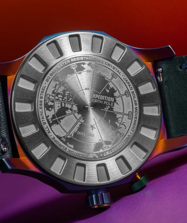 The Expedition NORTH POLE line offers a range of distinctive timepieces designed to provide essential functionality. Ideal for surviving in remote and challenging environments far from civilization. These watches are not just stylish accessories, but practical tools tailored for use at the North Pole. The vibrant colors ensure it stands out against the stark white landscape of the Arctic.